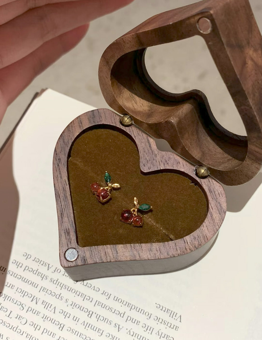 Design fruttato: Doppia ciliegia rosso rubino con foglie smaltate verdi