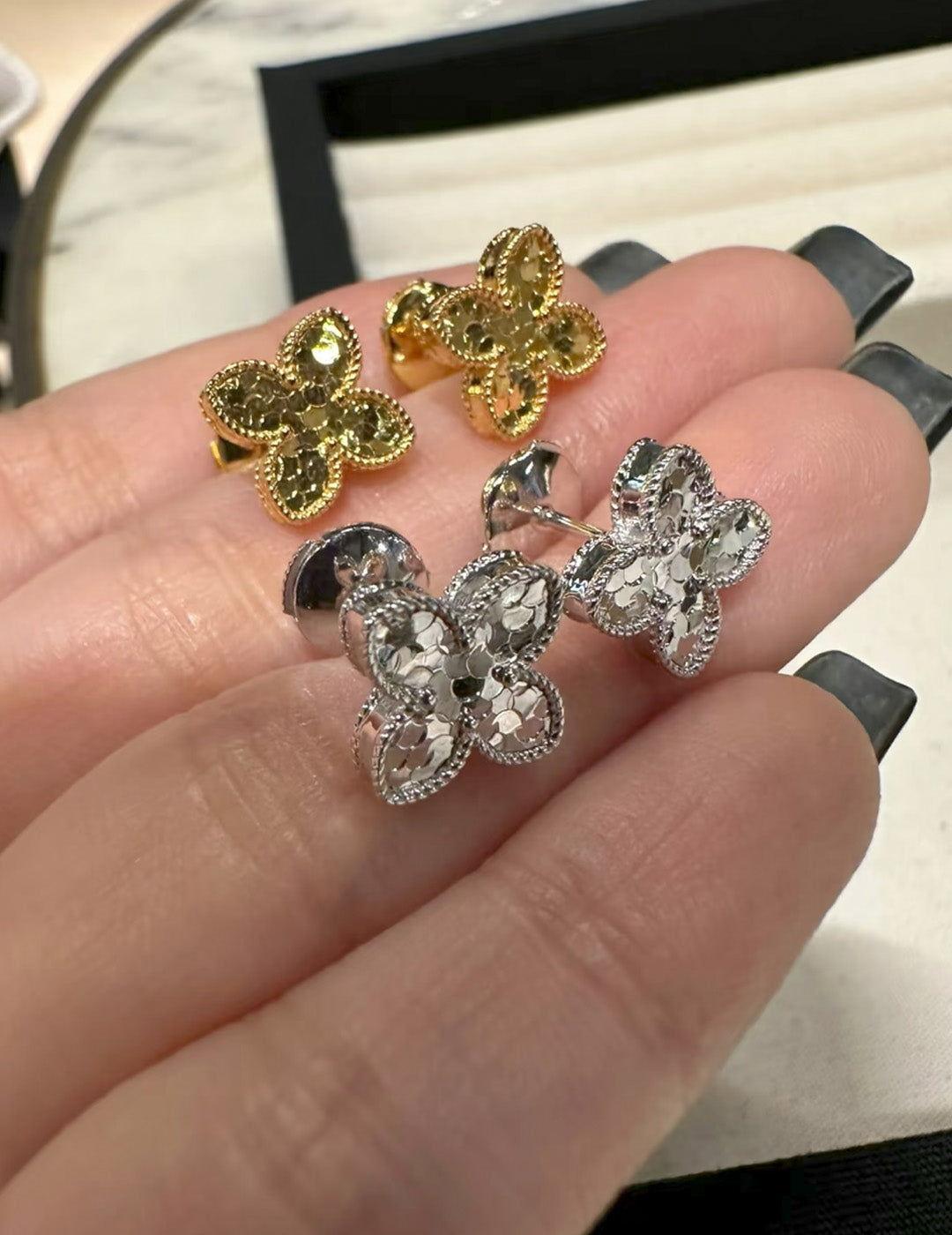 Eleganza floreale senza tempo. Gli Orecchini Fiore reinterpretano il classico motivo a quattro petali con un design scintillante e tridimensionale. Disponibili in due varianti — argento S925 o placcato oro 18k — sono perfetti per donare un tocco raffinato al tuo stile quotidiano.